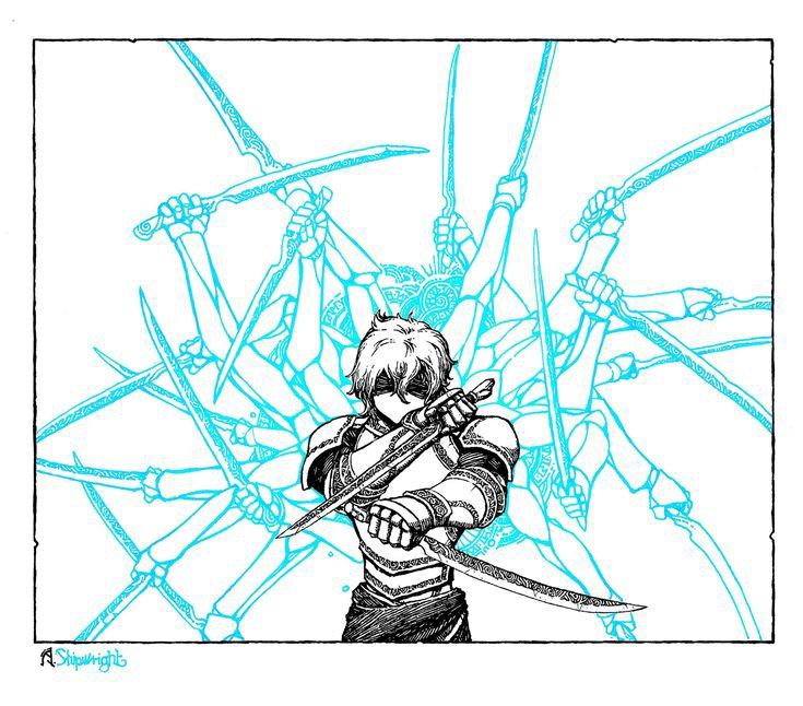 "Um cavaleiro se encontra encurralado contra um temível Dragão, mas ainda assim não se afronta. Ele ergue sua espada luminosa e avança, Se preparando para executar o primeiro movimento: Um ataque com a própria espada pesada, com o objetivo de romper a pele Asquerosa e resistiva de seu inimigo"